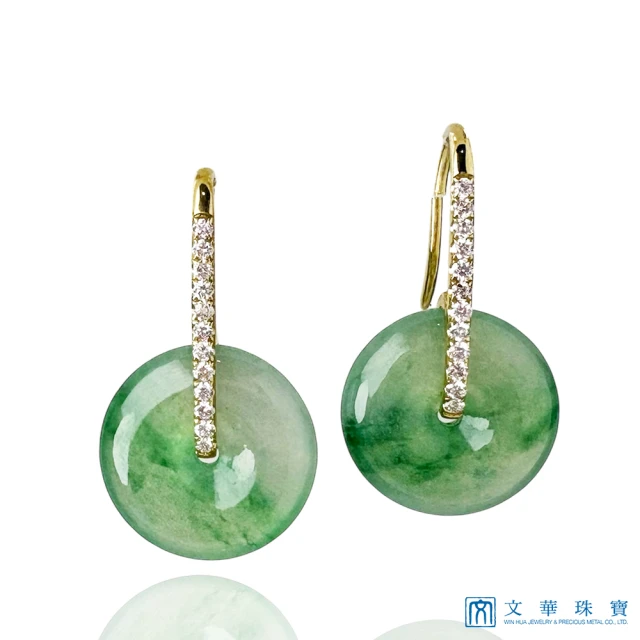 預購 文華珠寶 翡翠高冰飄綠平安扣黃K金鑽石耳環(平安扣耳環)