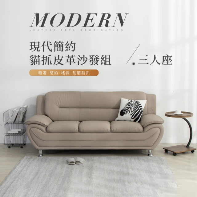 4. IDEA 溫頓飽滿舒適貓抓皮革三人沙發椅/貓抓皮沙發(2色任選)