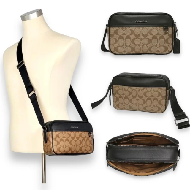 - COACH 老花LOGO 防刮牛皮 新款 雙拉鍊 側背包 相機包 肩背包(Coach C4149 卡其)